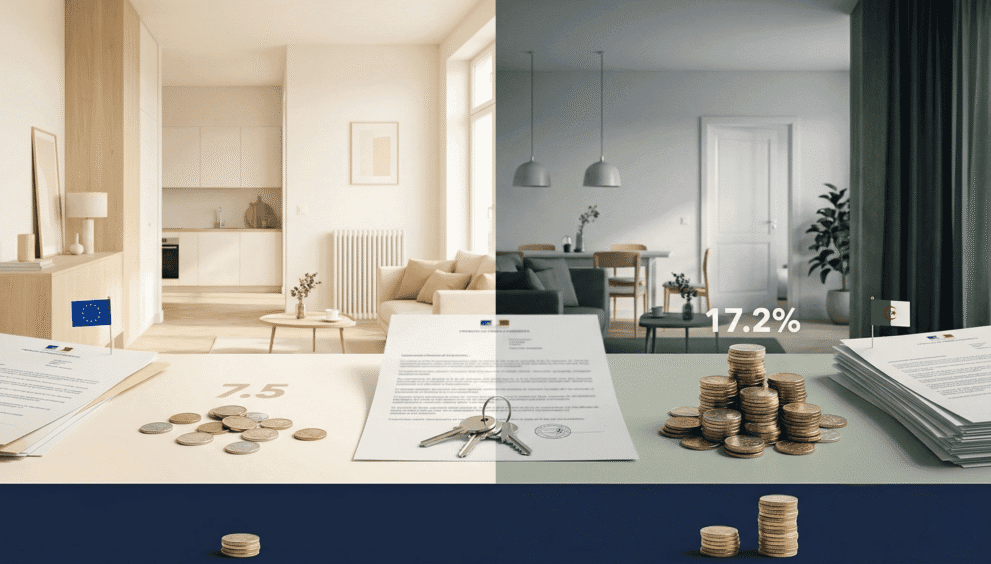 La différence est massive : un non-résident affilié à la sécurité sociale allemande paie 7,5 % de prélèvements sociaux sur ses loyers français. Un non-résident vivant en Algérie paie 17,2 % sur les mêmes loyers. C’est plus du double. Cette inégalité est confirmée par la jurisprudence européenne (CJUE, 18 janvier 2018). Pour savoir si vous êtes résident ou non-résident, consultez résidence fiscale France ou Algérie.