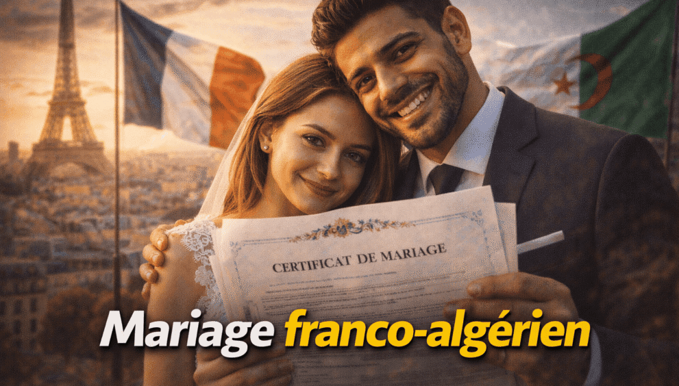 Vous êtes algérien et vous souhaitez épouser une Française — ou l’inverse ? Le mariage franco-algérien est parfaitement légal mais implique des démarches administratives dans les deux pays. Que le mariage soit célébré en France ou en Algérie, les documents exigés, les étapes et les délais diffèrent. Ce guide détaille les papiers nécessaires, la procédure complète (mairie, consulat, transcription) et ce qui se passe après le mariage pour le titre de séjour.