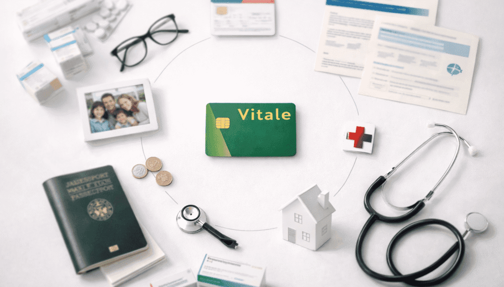 La Protection Universelle Maladie (PUMa) garantit à toute personne résidant en France de manière stable (≥ 3 mois) et régulière (titre de séjour valide) un droit à la prise en charge de ses frais de santé. Depuis 2016, chaque adulte a son propre numéro de sécurité sociale et sa propre carte Vitale — y compris les étrangers. L’affiliation est gratuite.