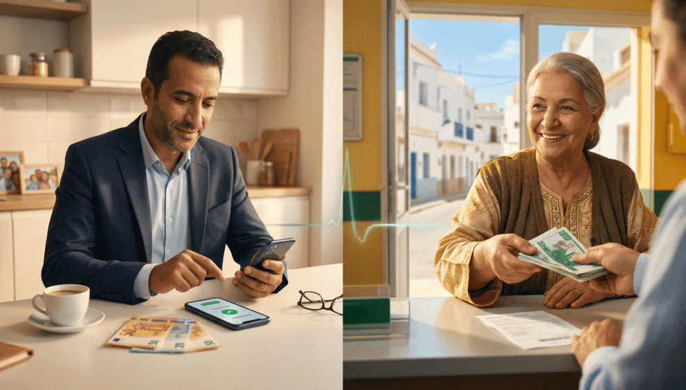 Western Union reste le leader pour les envois urgents avec retrait en espèces en Algérie. L’argent est disponible en minutes. Le bénéficiaire se rend dans une agence WU (réseau dense en Algérie), présente sa pièce d’identité et le numéro de suivi (MTCN), et retire les DZD. Plafond : ~7 500 € en agence, ~5 000 € en ligne.
